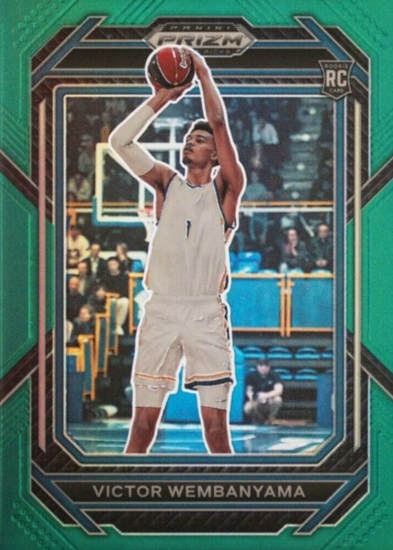 The Victor Wembanyama 2023 Prizm Draft Picks #2 Green Rookie card in Raw condition has moved down -$2.99 (-16.6%) in the last 30 days and was last sold for $15.00 .