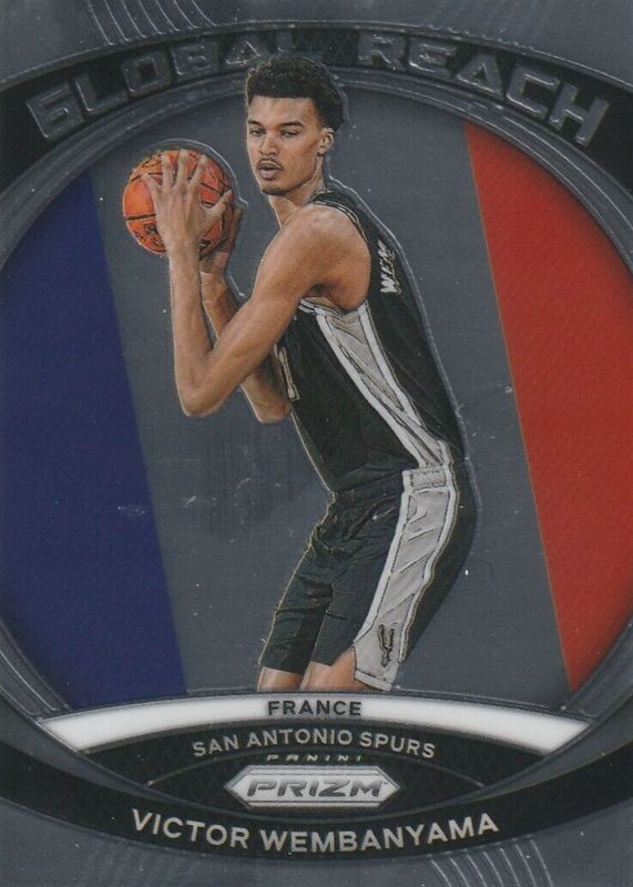 The Victor Wembanyama 2023 Prizm #2 Global Reach Rookie card in Raw condition has moved down -$0.93 (-18.0%) in the last 30 days and was last sold for $4.26 .
