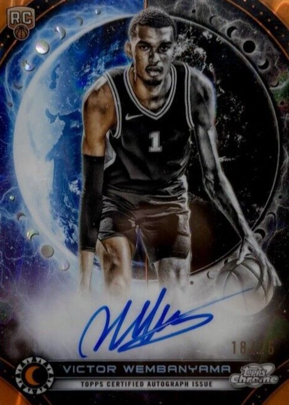 Best Prices Available For Sale of Victor Wembanyama 2023 Topps Chrome Cosmic #ERA-VW Equinox Autographs - Orange Galactic Refractor /25
