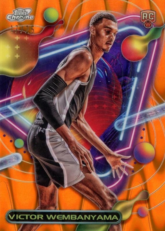 Auctions Ending Soon for Victor Wembanyama 2023 Topps Chrome Cosmic #151 Orange Galactic Refractor /25 Rookie RAW