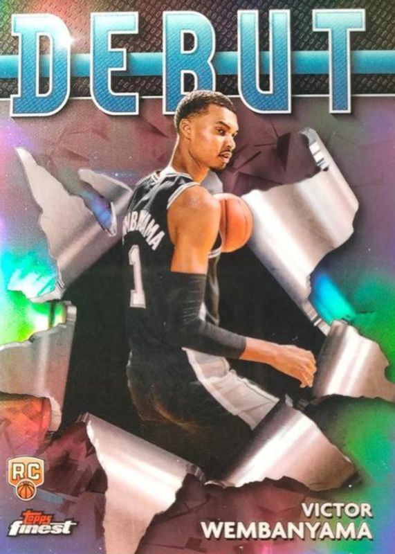 The Victor Wembanyama 2023 Topps Finest #D-1 Debut - Refractor Rookie card in Raw condition has moved up $8.39 (+72.3%) in the last 30 days and was last sold for $20.00 .