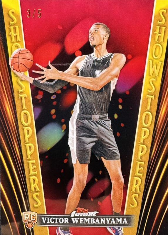 The Victor Wembanyama 2023 Topps Finest #SS-21 Showstoppers - Red Refractor /5 Rookie card in Raw condition has not changed in price in the last 30 days and was last sold for $455.00 .