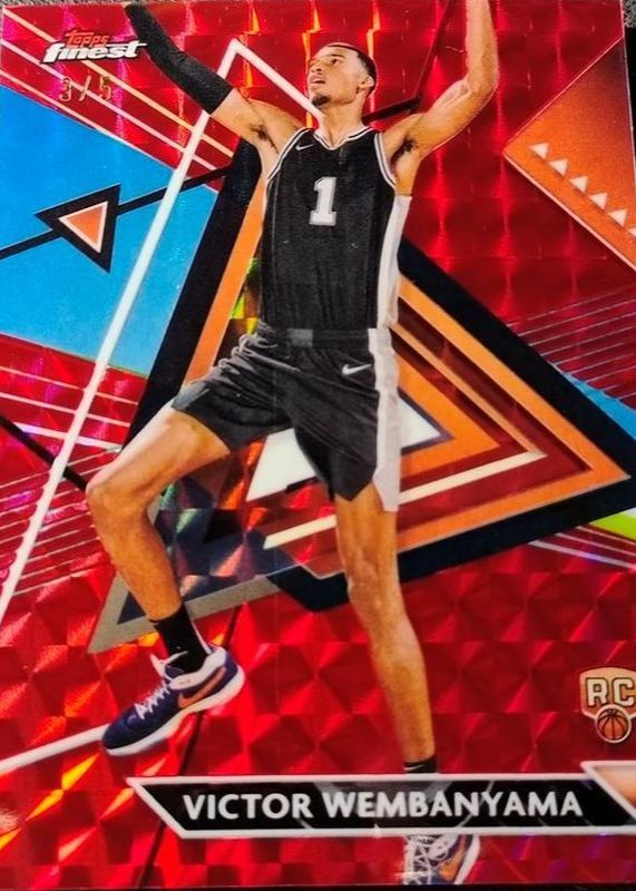 Auctions Ending Soon for Victor Wembanyama 2023 Topps Finest #197 Uncommon - Red Geometric Refractor /5 Rookie RAW