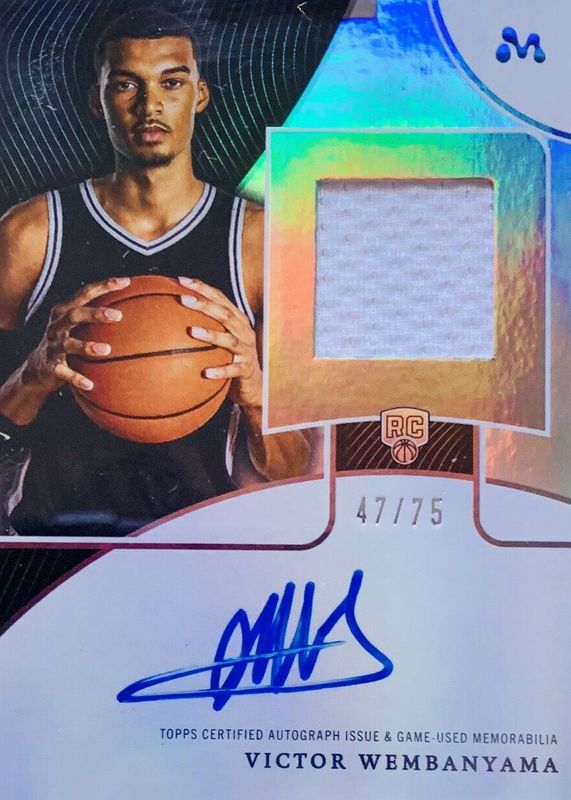 The Victor Wembanyama 2023 Topps Mercury Victor Wembanyama #WAR-5 Autograph Relics - French Language /75 Rookie card in Raw condition has not changed in price in the last 30 days and was last sold for $2,210.00 .