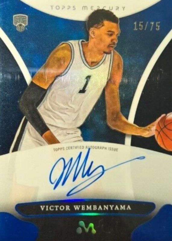2023 Topps Mercury Blue Refractor Victor Wembanyama ROOKIE AUTO /75 #WA-4