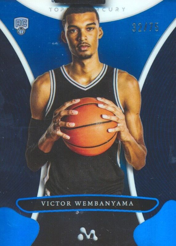 The Victor Wembanyama 2023 Topps Mercury Victor Wembanyama #10 Blue Refractor /75 Rookie card in Raw condition has not changed in price in the last 30 days and was last sold for $83.00 .