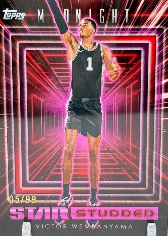 The Victor Wembanyama 2023 Topps Midnight #SS-21 Star Studded - Twilight /99 Rookie card in Raw condition has not changed in price in the last 30 days and was last sold for $27.00 .