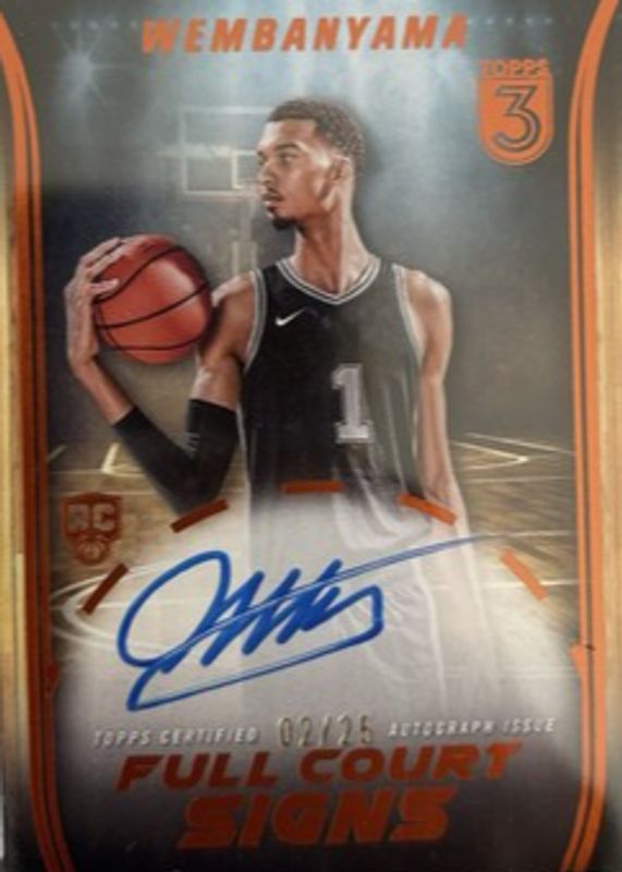 Auctions Ending Soon for Victor Wembanyama 2023 Topps Three #FCS-VW Full Court Signs - Bronze /25 Rookie RAW