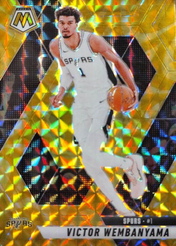 The Victor Wembanyama 2024 Mosaic #31 Reactive Yellow card in Raw condition has moved up $6.42 (+163%) in the last 30 days and was last sold for $10.36 .