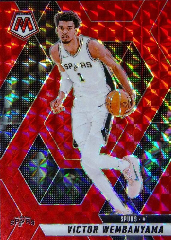 The Victor Wembanyama 2024 Mosaic #31 Red card in Raw condition has moved up $2.25 (+69.2%) in the last 30 days and was last sold for $5.50 .