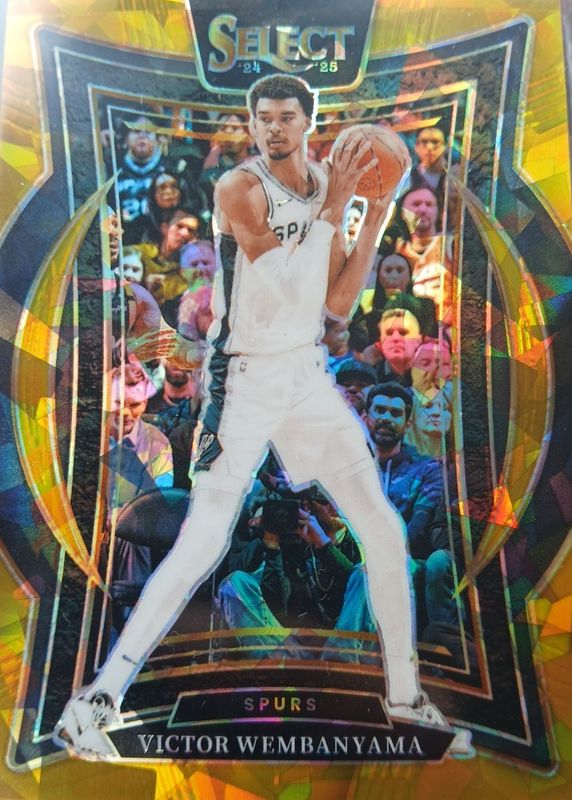 The Victor Wembanyama 2024 Select #9 Concourse Gold Cracked Ice /10 card in Raw condition has not changed in price in the last 30 days and was last sold for $418.50 .