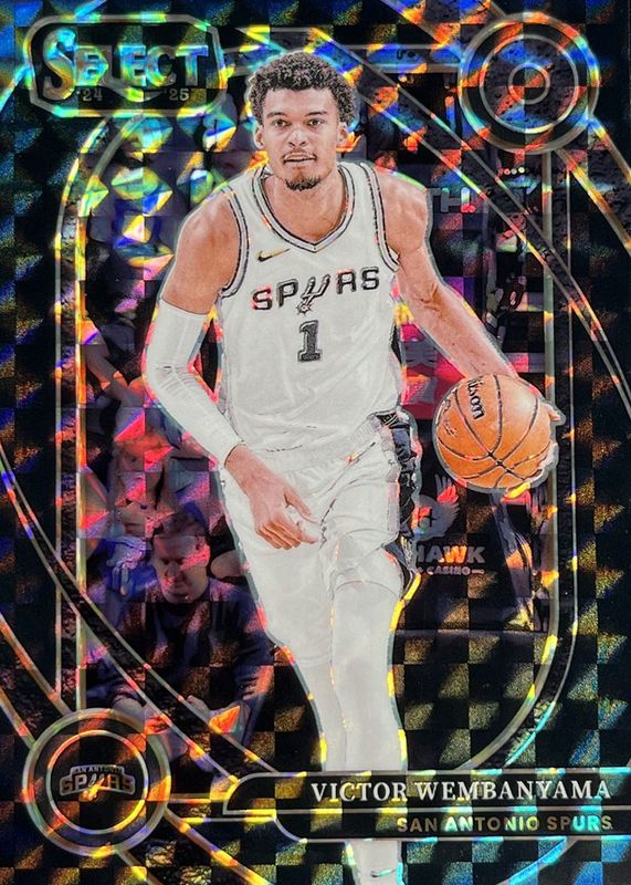 This card is 1 of 175 Victor Wembanyama's card variations in the 2024 Select set being tracked by Sports Card Investor, including Courtside Blue Prizm, Courtside Disco, Courtside Green Mojo, Courtside Green Stars, and Courtside Green Tectonic.