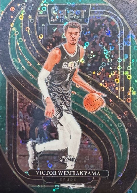 This card is 1 of 175 Victor Wembanyama's card variations in the 2024 Select set being tracked by Sports Card Investor, including Courtside Blue Prizm, Courtside Disco, Courtside Green Mojo, Courtside Green Stars, and Courtside Green Tectonic.