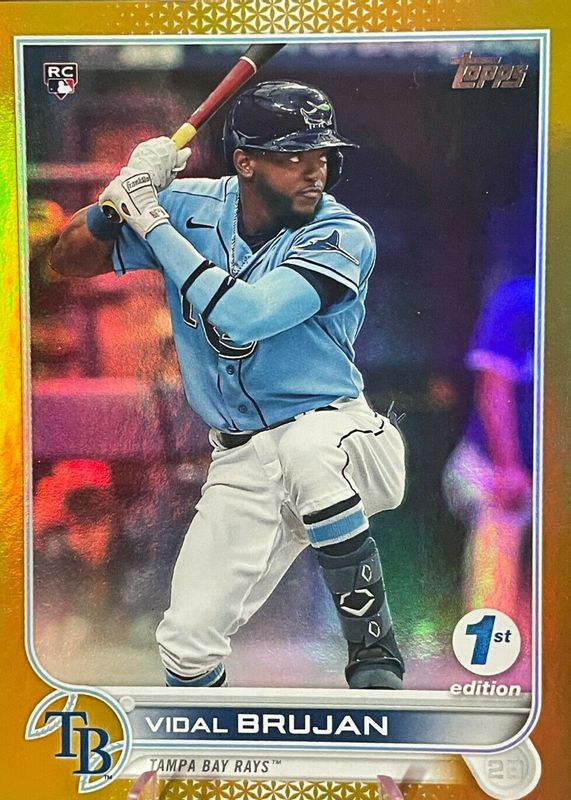 The Vidal Brujan 2022 Topps 1st Edition #25 Gold Foil Rookie card in Raw condition has not changed in price in the last 30 days and was last sold for $1.71 .