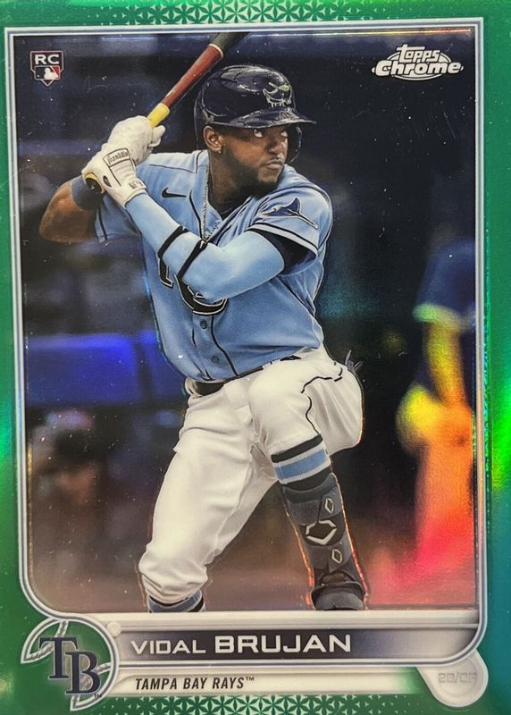 This card is 1 of 41 Vidal Brujan's card variations in the 2022 Topps Chrome set being tracked by Sports Card Investor, including Base, Black & White Mini-Diamond Refractor, Negative Refractor, Pink Refractor, and Prism Refractor.