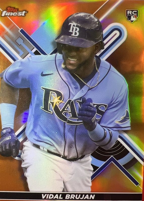 This card is 1 of 19 Vidal Brujan's card variations in the 2022 Topps Finest set being tracked by Sports Card Investor, including Base, Refractor, Sky Blue Refractor /300, Blue/Aqua Vapor Refractor /250, and Purple Refractor /250.