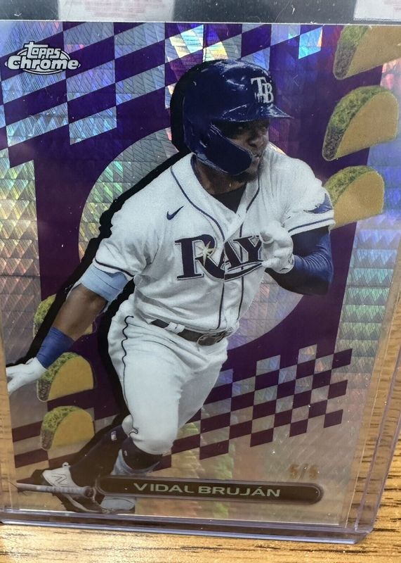 The Vidal Brujan 2023 Topps Chrome #TF-159 TacoFractor /5 card in Raw condition has not changed in price in the last 30 days and was last sold for $100.00 .