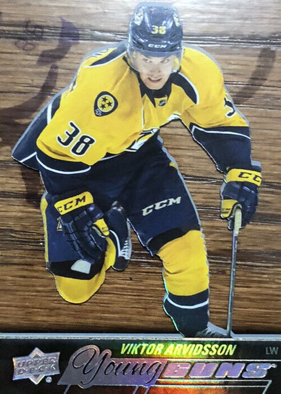 This card is 1 of 7 Viktor Arvidsson's card variations in the 2015 Upper Deck set being tracked by Sports Card Investor, including Young Guns Base, Young Guns - Jumbo, Young Guns - Foil, Young Guns - UD Exclusives /100, and Young Guns - UD Midnight /25.