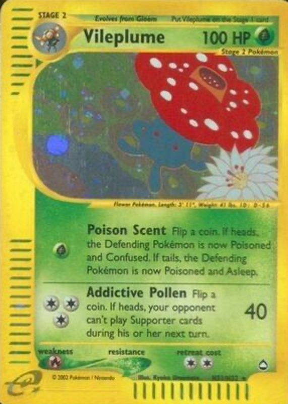 Vileplume 2003 Aquapolis #H31 Holo RAW TCG (NEAR MINT) Price Guide