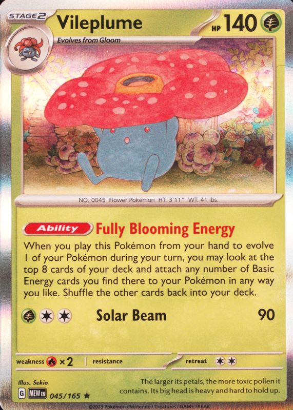 Vileplume 2023 Scarlet & Violet: 151 #045/165 Base RAW TCG (NEAR MINT) Price Guide