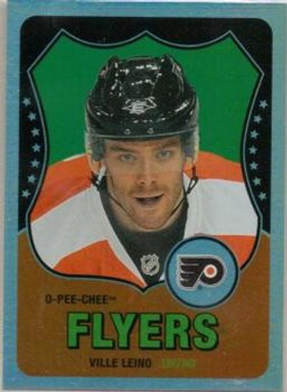 The Ville Leino 2010 O-Pee-Chee #59 Retro Rainbow card is 1 of 5 Ville Leino's card variations in the 2010 O-Pee-Chee set being tracked by Sports Card Investor, including Base, Retro, Retro Blank Back, and Retro Black Rainbow /100.