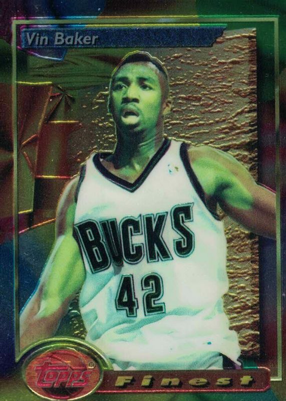 This card is 1 of 2 Vin Baker's card variations in the 1993 Topps Finest set being tracked by Sports Card Investor, including Refractor.
