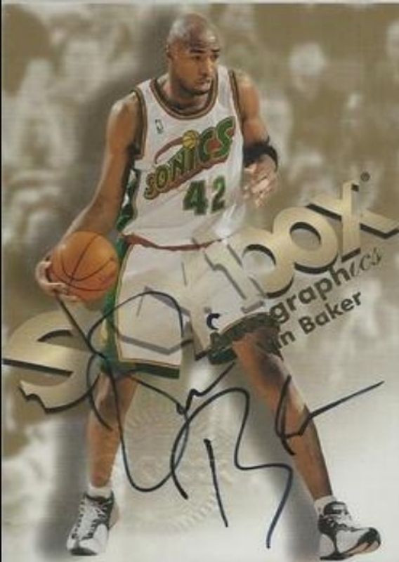 The Vin Baker 1998 Skybox E-X Century Autographics card is 1 of 4 Vin Baker's card variations in the 1998 Skybox E-X Century set being tracked by Sports Card Investor, including Base, Essential Credentials Future (/69), and Essential Credentials Now (/22).