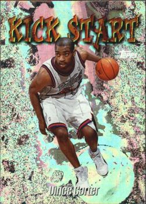 The Vince Carter 1998 Topps #KS9 Kick Start Rookie card is 1 of 3 Vince Carter's card variations in the 1998 Topps set being tracked by Sports Card Investor, including Base, and Draft Pick Exchange.