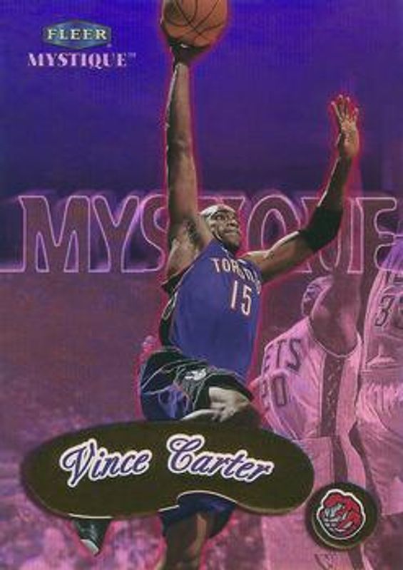 The Vince Carter 1999 Fleer Mystique #94 Gold card is 1 of 8 Vince Carter's card variations in the 1999 Fleer Mystique set being tracked by Sports Card Investor, including #94 Base /2999, #142 Base /2999, #94 Masterpiece /1, #142 Masterpiece /1, and Feel the Game Memorabilia.