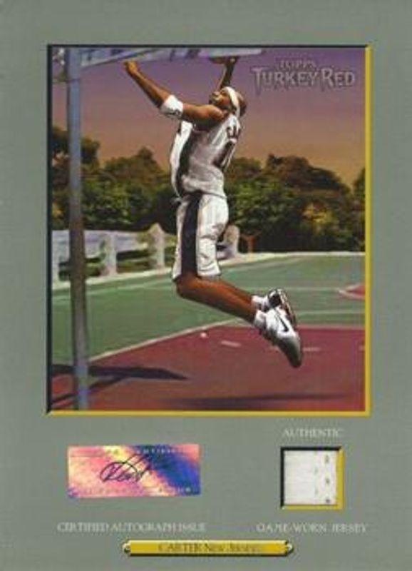The Vince Carter 2006 Topps Turkey Red #TRCRA6 Cabinet Jumbos Relics Autographs /10 card is 1 of 34 Vince Carter's card variations in the 2006 Topps Turkey Red set being tracked by Sports Card Investor, including #120b Base, #120 Base, #120 Black, #120a Red, and #120b Red.