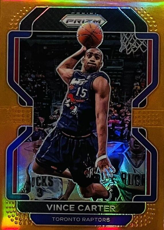 This card is 1 of 39 Vince Carter's card variations in the 2021 Prizm set being tracked by Sports Card Investor, including Red /299, Blue /199, Fast Break Blue /150, Premium Factory Set /150, and Purple Ice /149.
