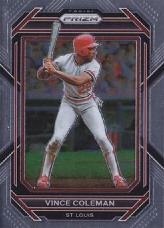The Vince Coleman 2023 Prizm #205 Base card is 1 of 43 Vince Coleman's card variations in the 2023 Prizm set being tracked by Sports Card Investor, including Blue Ice, Giraffe, Green Ice, Hyper, and Ice.