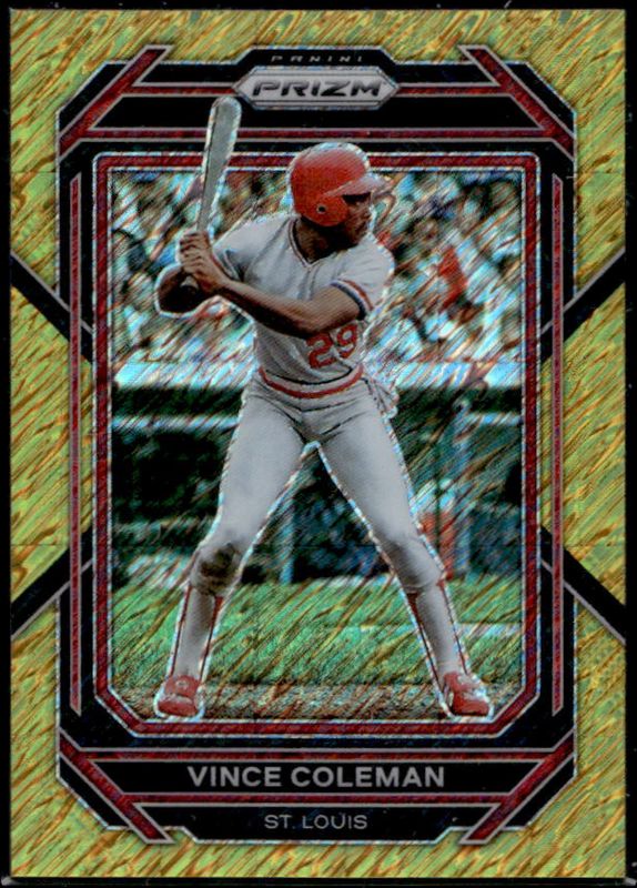 The Vince Coleman 2023 Prizm #205 Gold Shimmer /10 card is 1 of 43 Vince Coleman's card variations in the 2023 Prizm set being tracked by Sports Card Investor, including Base, Blue Ice, Giraffe, Green Ice, and Hyper.