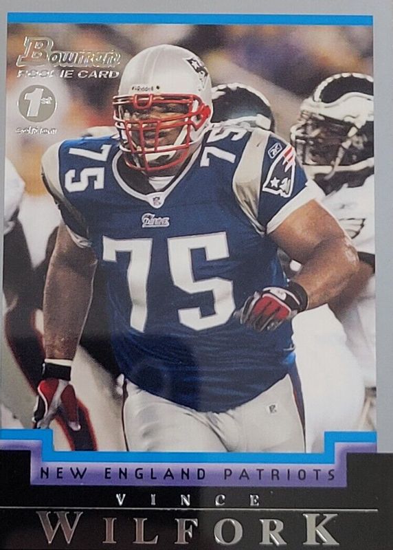 This card is 1 of 4 Vince Wilfork's card variations in the 2004 Bowman set being tracked by Sports Card Investor, including Base, Gold, and White /165.