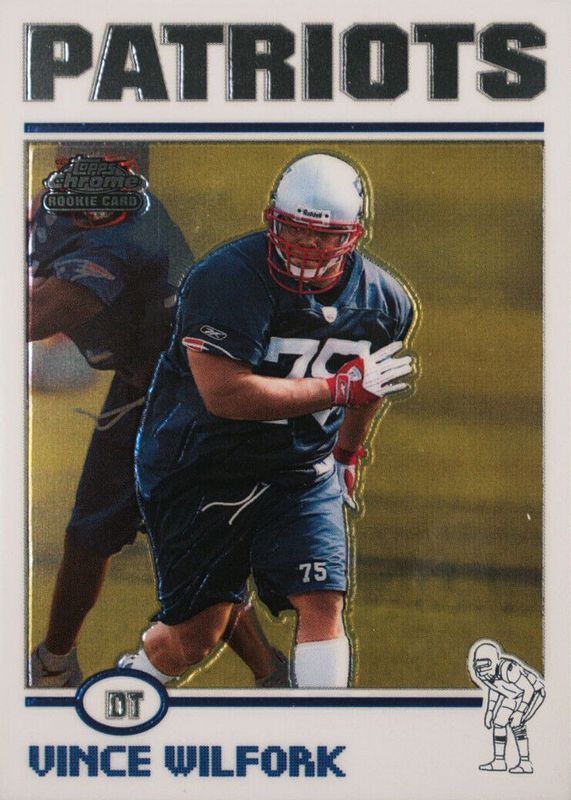 The Vince Wilfork 2004 Topps Chrome #182 Base Rookie card in Raw condition has moved down -$2.95 (-19.7%) in the last 30 days and was last sold for $12.00 .