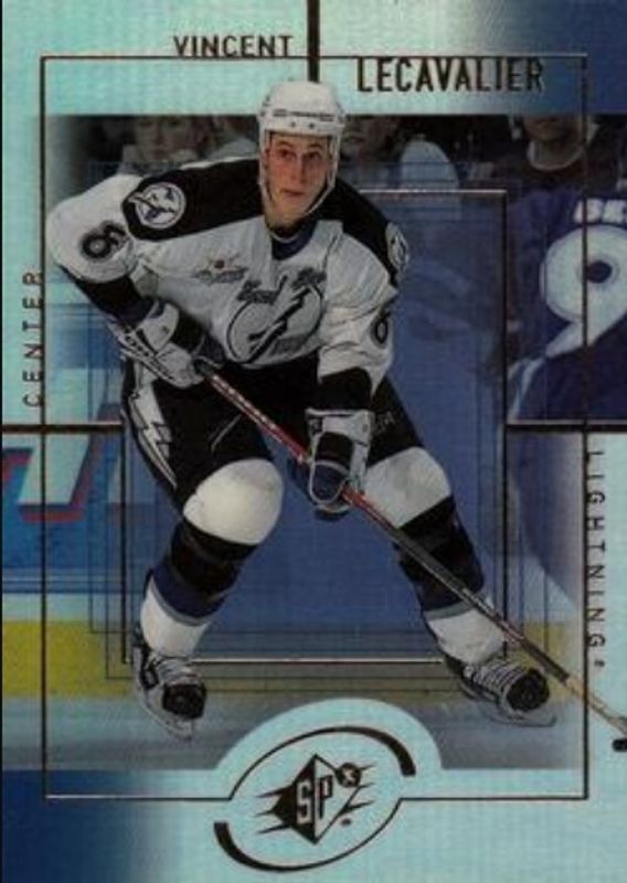 The Vincent Lecavalier 1999 SPx #137 Base /1999 card is 1 of 4 Vincent Lecavalier's card variations in the 1999 SPx set being tracked by Sports Card Investor, including Radiance /100, Spectrum /1, and Prolifics.