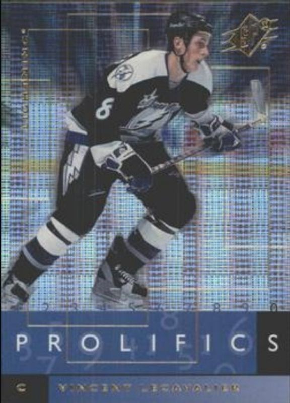 The Vincent Lecavalier 1999 SPx #P8 Prolifics card is 1 of 4 Vincent Lecavalier's card variations in the 1999 SPx set being tracked by Sports Card Investor, including Base /1999, Radiance /100, and Spectrum /1.