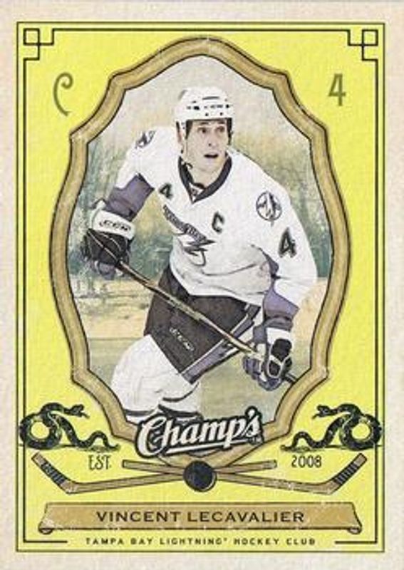 The Vincent Lecavalier 2009 Upper Deck Champ's #87 Animal Icons card is 1 of 10 Vincent Lecavalier's card variations in the 2009 Upper Deck Champ's set being tracked by Sports Card Investor, including #283 Base, #87 Base, #87 Green, #87 Red, and #87 Yellow.