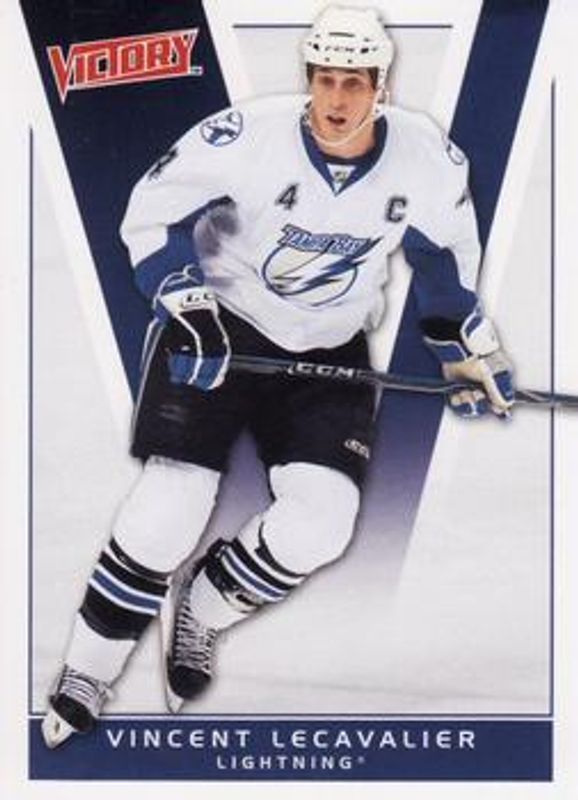 The Vincent Lecavalier 2010 Upper Deck Victory #174 Base card is 1 of 4 Vincent Lecavalier's card variations in the 2010 Upper Deck Victory set being tracked by Sports Card Investor, including Black, Gold, and Red.