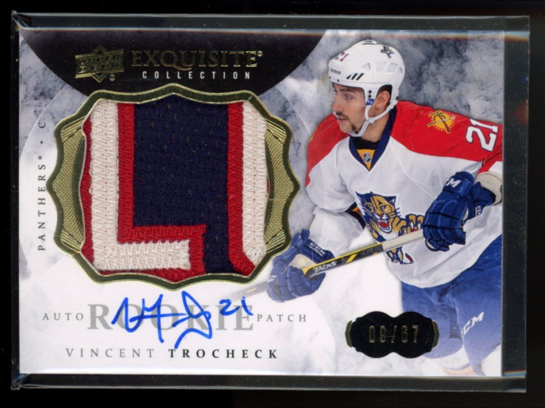 The Vincent Trocheck 2014 Upper Deck The Cup #40 Exquisite Collection /25 Rookie card is 1 of 64 Vincent Trocheck's card variations in the 2014 Upper Deck The Cup set being tracked by Sports Card Investor, including Base /249, Gold Spectrum Autographs /25, Gold /10, Gold Foil /10, and Red /3.