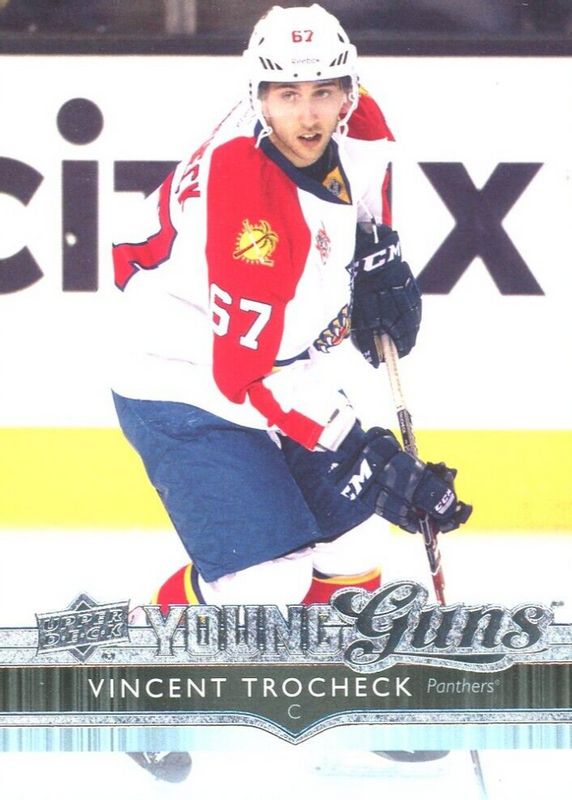 The Vincent Trocheck 2014 Upper Deck #226 Young Guns Base Rookie card in Raw condition has moved up $2.14 (+49.2%) in the last 30 days and was last sold for $6.49 .