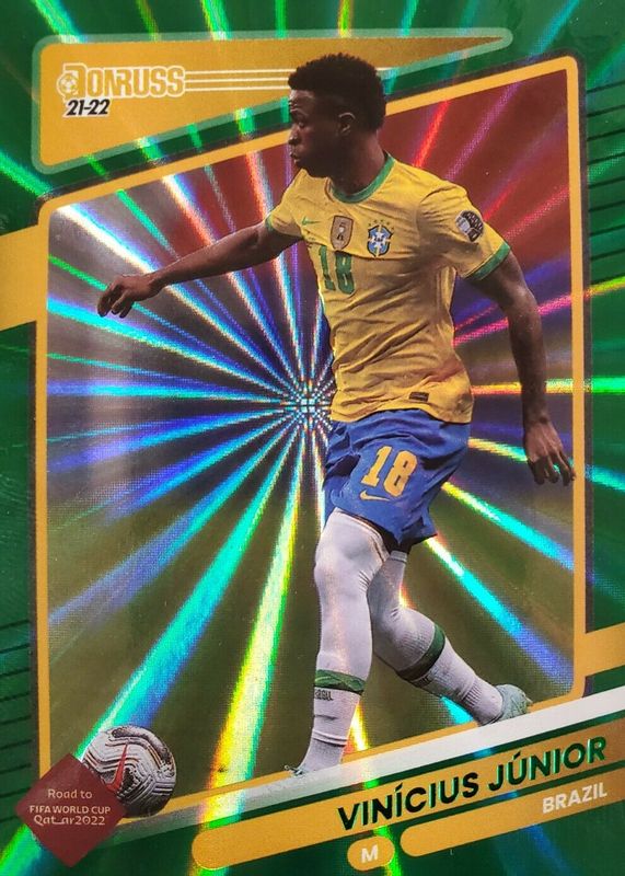 2021 Panini Donruss Soccer Vinicius Junior Green Laser Road to Qatar Brazil