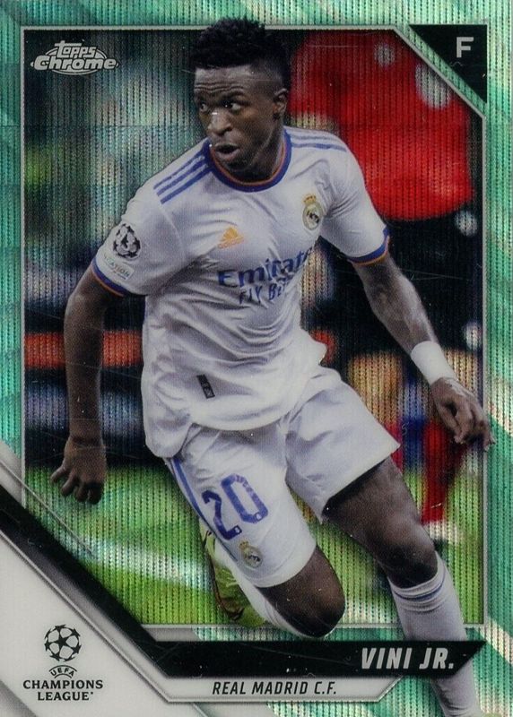 This card is 1 of 22 Vinicius Jr.'s card variations in the 2021 Topps Chrome UEFA Champions League set being tracked by Sports Card Investor, including Silver Mini-Diamond Refractor /275, Purple Mini-Diamond Refractor /250, Purple Refractor /250, Night Vision Refractor /225, and Aqua Refractor /199.