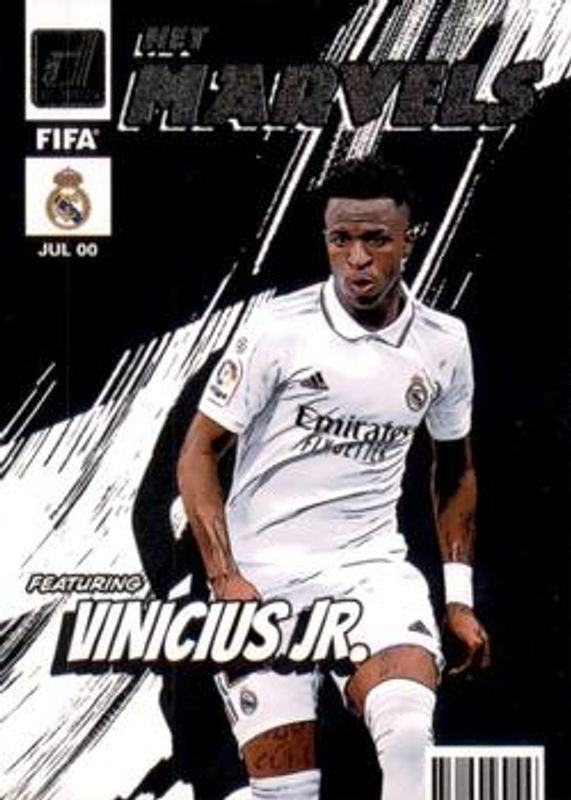 The Vinicius Jr. 2022 Donruss #20 Net Marvels - Silver card is 1 of 48 Vinicius Jr.'s card variations in the 2022 Donruss set being tracked by Sports Card Investor, including Base, Green, Optic, Optic - Green Ice, and Optic - Holo.