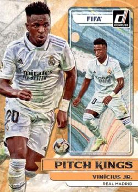 The Vinicius Jr. 2022 Donruss #19 Pitch Kings - Silver card is 1 of 48 Vinicius Jr.'s card variations in the 2022 Donruss set being tracked by Sports Card Investor, including Base, Green, Optic, Optic - Green Ice, and Optic - Holo.