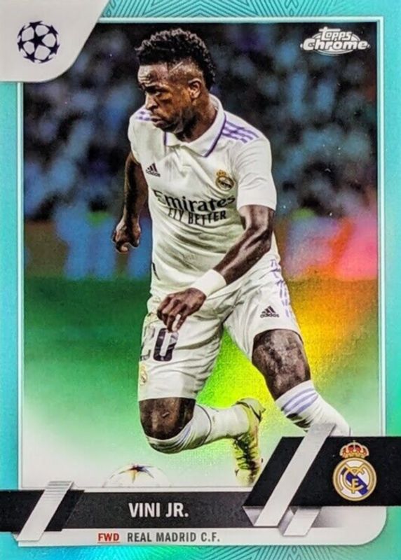 Best Prices Available For Sale of Vinicius Jr. 2022 Topps Chrome UEFA Club Competitions #20 Aqua Refractor /199