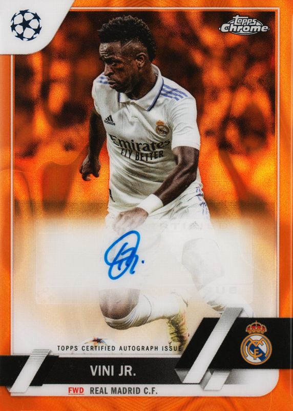 2022-23 Topps Chrome UEFA Club Competitions VINI JR. Orange Lava SP Auto RMA