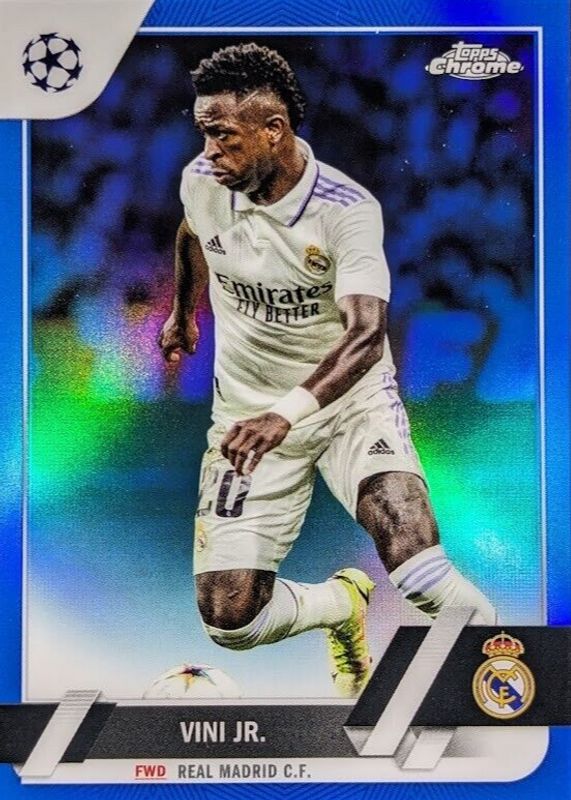 Best Prices Available For Sale of Vinicius Jr. 2022 Topps Chrome UEFA Club Competitions #20 Blue Refractor /150