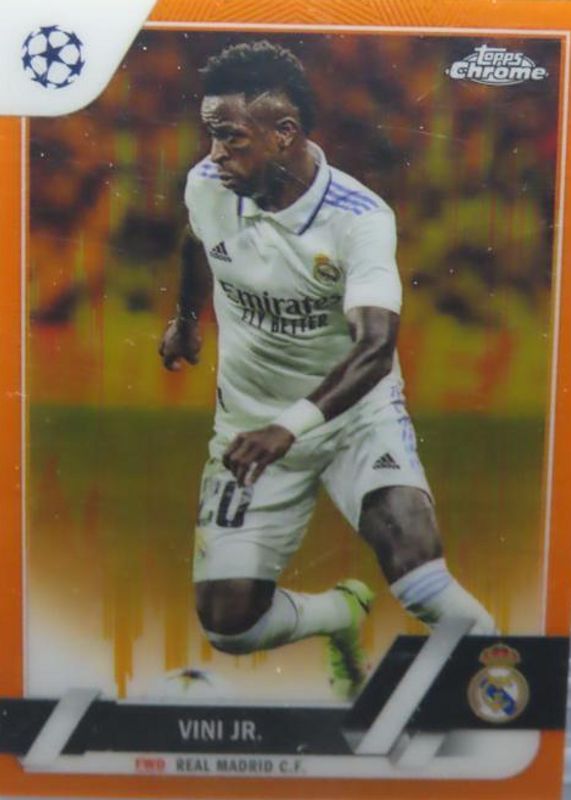 Vinicius Jr. 2022 Topps Chrome UEFA Club Competitions #20 Orange & Gold Seismic Refractor RAW Price Guide