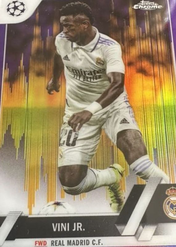 Vinicius Jr. 2022 Topps Chrome UEFA Club Competitions #20 Purple & Gold Seismic Refractor RAW Price Guide